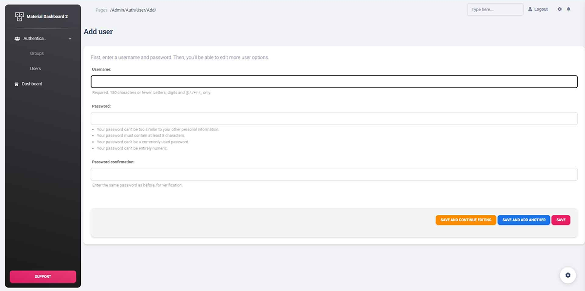 Open-source template for Django admin section styled with Material Dashboard Design (free version)