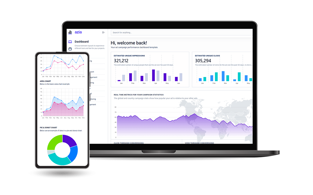 Open-source Django Starter coded on top Azia Dashboard design (free version).